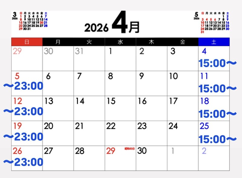 - 土曜 15:00 - 00:00